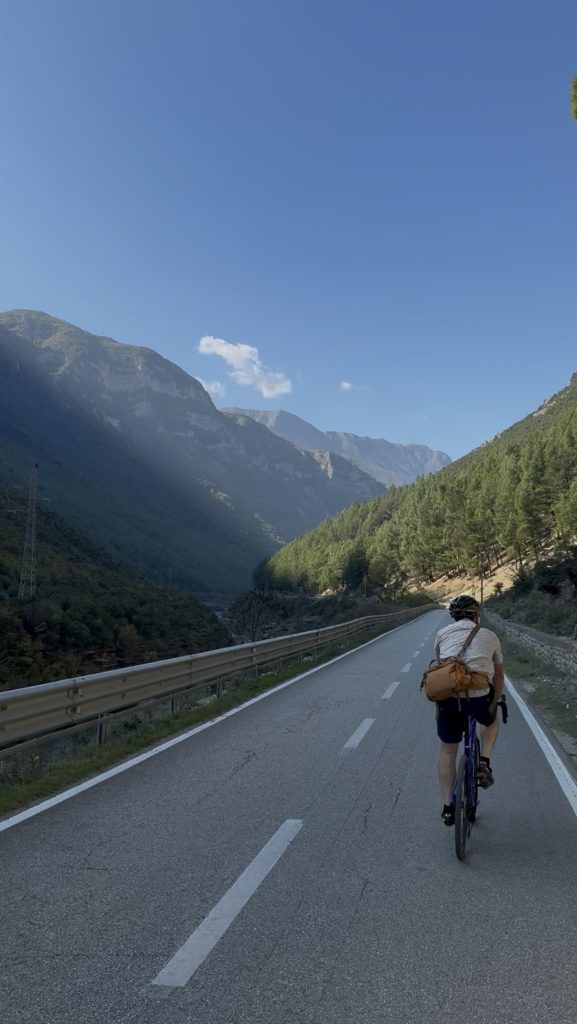 A climb out from Sotirë to a high Pine forest plateau surrounded by soaring peaks, before reaching the source of the River Vjosa and descending through its spectacular gorge to Leskovik. The 17km long descend to Çarshovë is both a pleasure and a thrill to cycle in one of the most scenic rides of the tour. We follow the corniche route high above the river to Përmet, famed for its cuisine and strong raki. After arriving at our guesthouse for lunch, in the village of Bënjë, we will there after continue cycling for another 4km to the thermal pools of Langarica and its canyon. A 16th cantury ancient ottoman bridge marks the spot and the end of the road. If you feel adventurous and want to swim alone in one of the more secluded pools, build every spring by the locals, hike upriver through one of the most magnificent canyons in Europe.